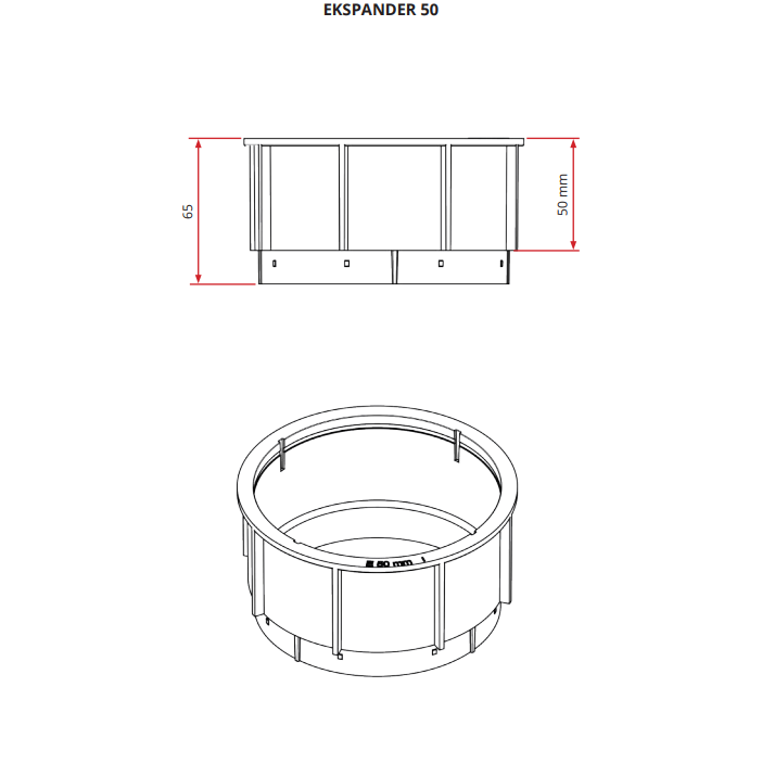 - ekspander przedłużający wysokość wspornika o 50 mm