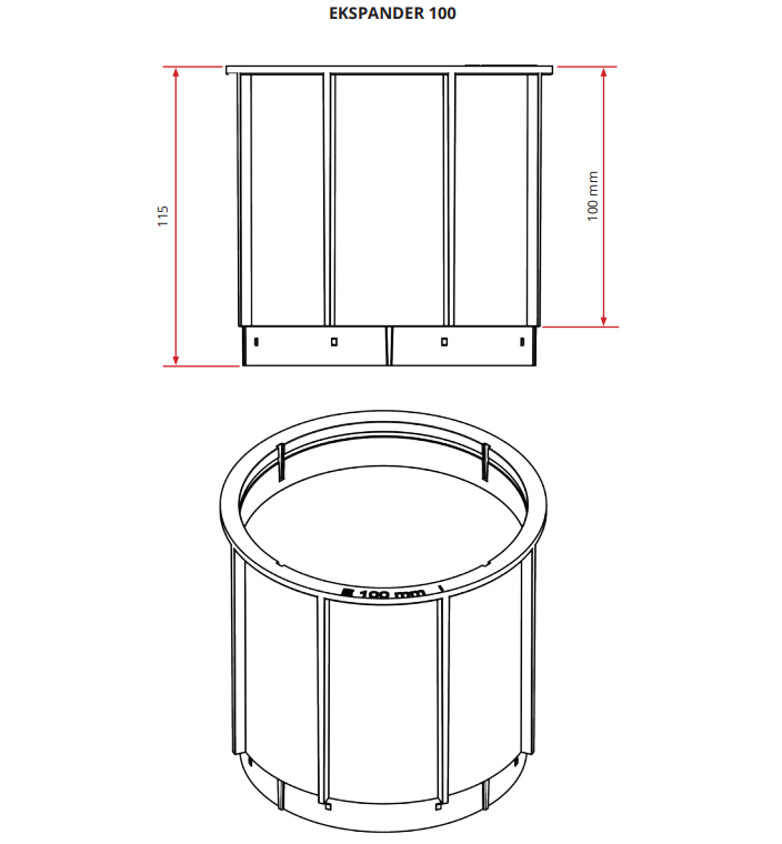 - ekspander przedłużający wysokość wspornika o 100 mm
