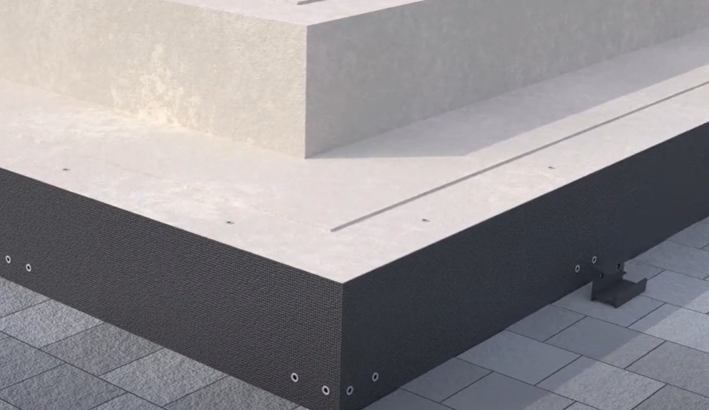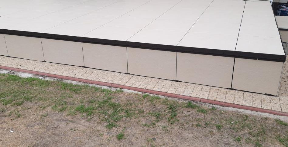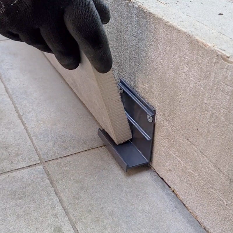 Klips schodowy dolny przeznaczony do wykonania podstopnic schodów tarasowych z płyt grubowarstwowych (2 cm) w systemie posadzki wentylowanej (podniesionej).