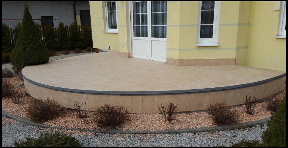 Profil okapowy do tarasów i balkonów w kształcie łuku (półokrągłe) przeznaczony do posadzki z płytek ceramicznych układanych na kleju (tradycyjnie).