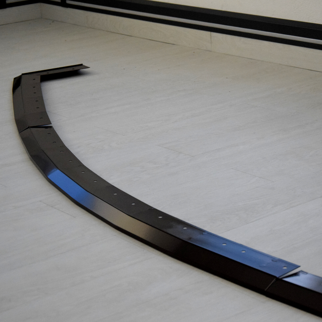 Jesteśmy w stanie wykonać profil okapowy o każdym kształcie, elementy (maksymalne odcinki łuku 2 metry) łączymy ze sobą, za pomocą łączników danego systemu okapowego (pamiętając o 2 mm dylatacji pomiedzy łączeniami).