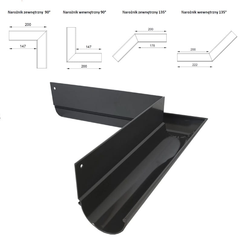- kąt 135º zewnętrzny