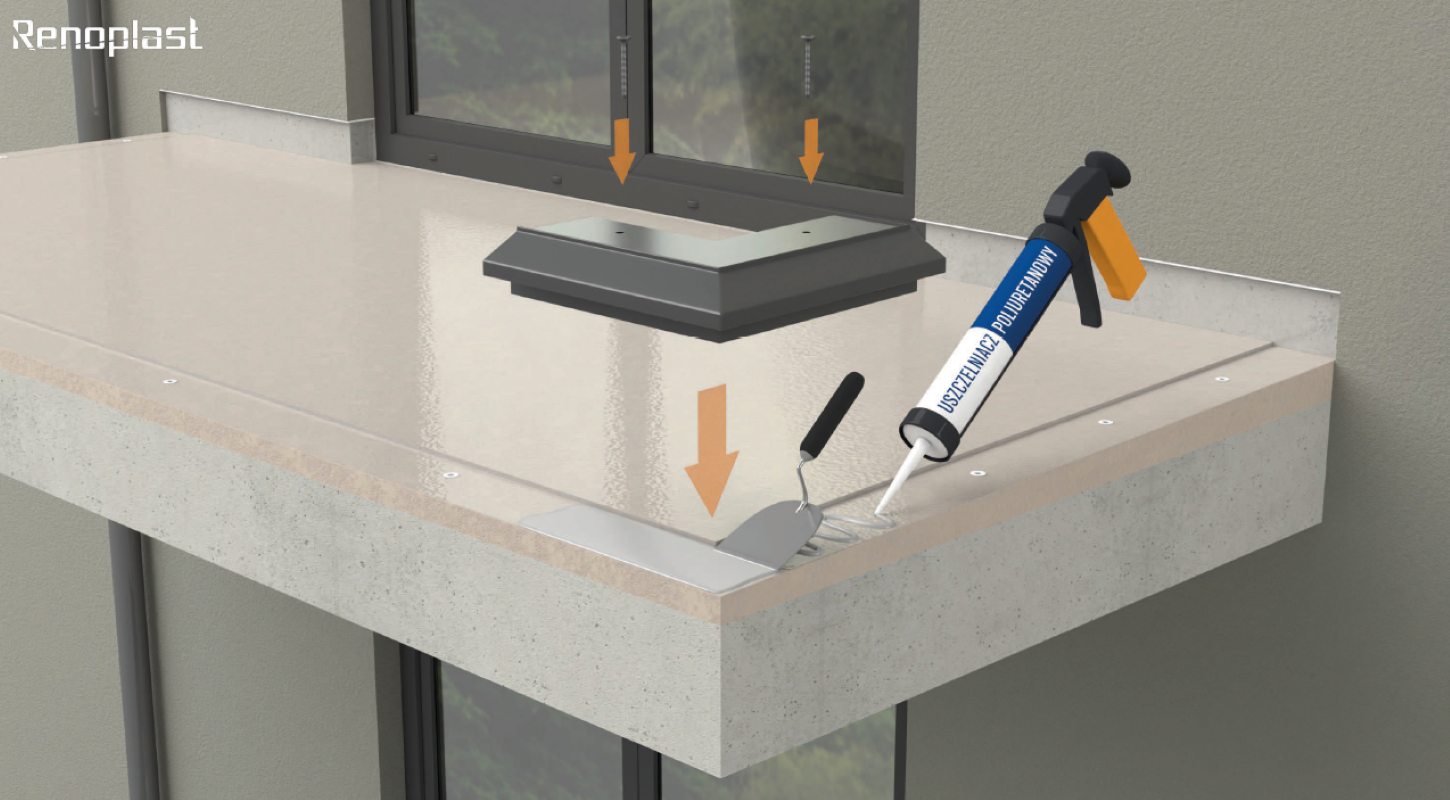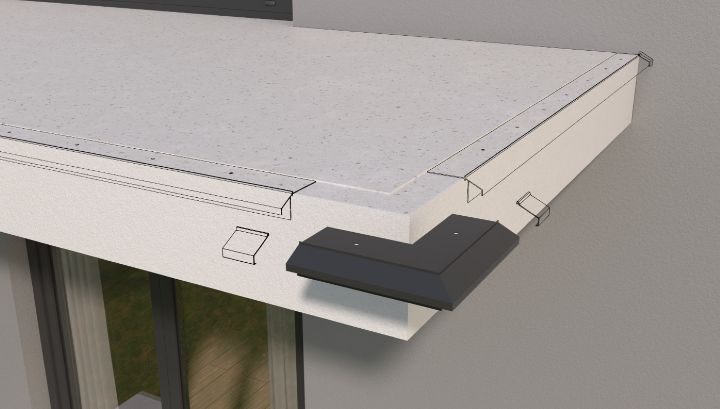 Narożnik do profilu okapowego Renoplast K10R (posadzka z żywicy cienkowarstwowej) z możliwością wykorzystania systemu rynnowego Renoplast R50.