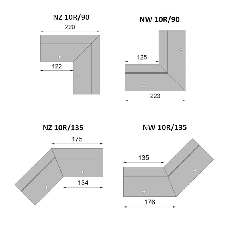Do każdego narożnika w zestawie dodawane są dwa kołki montażowe.