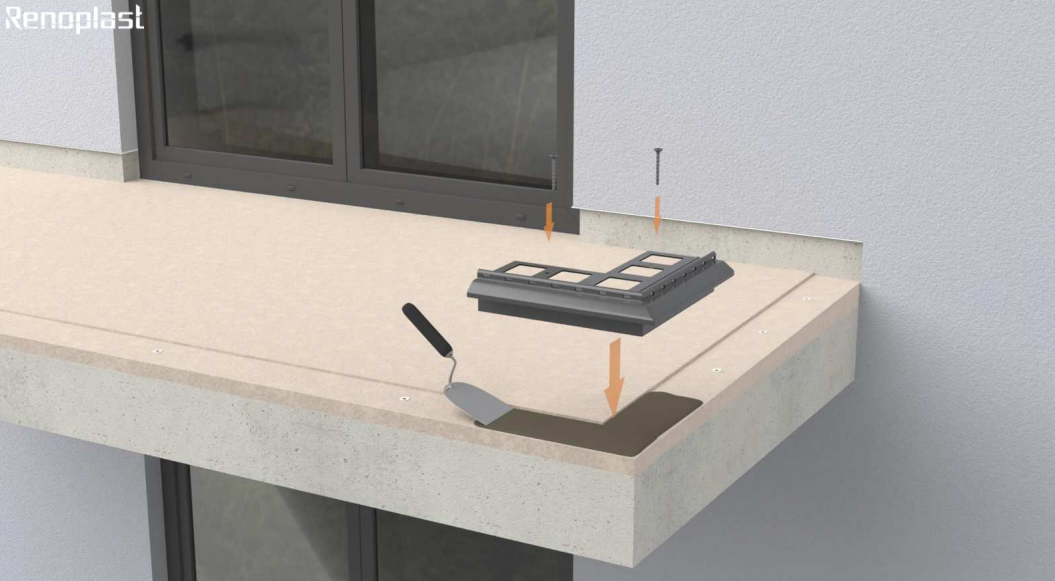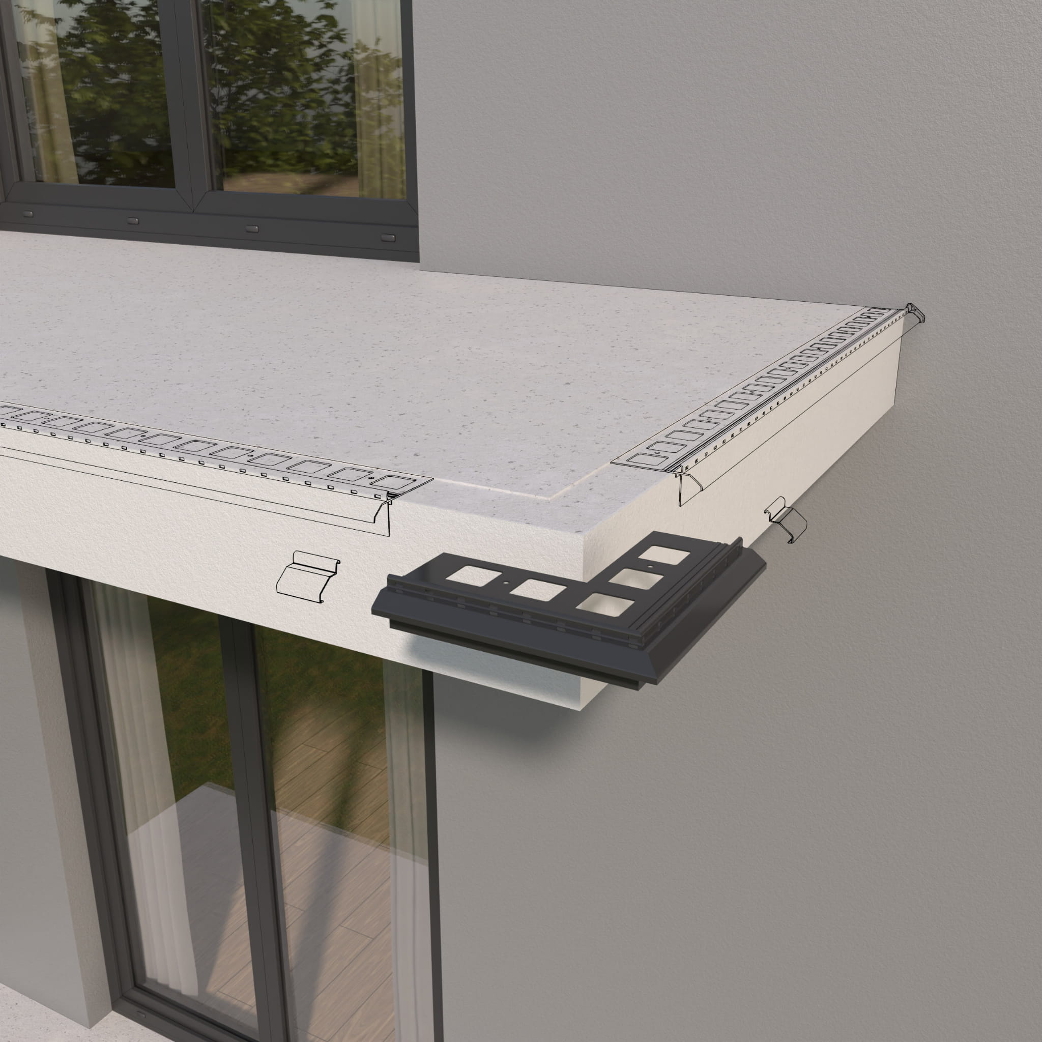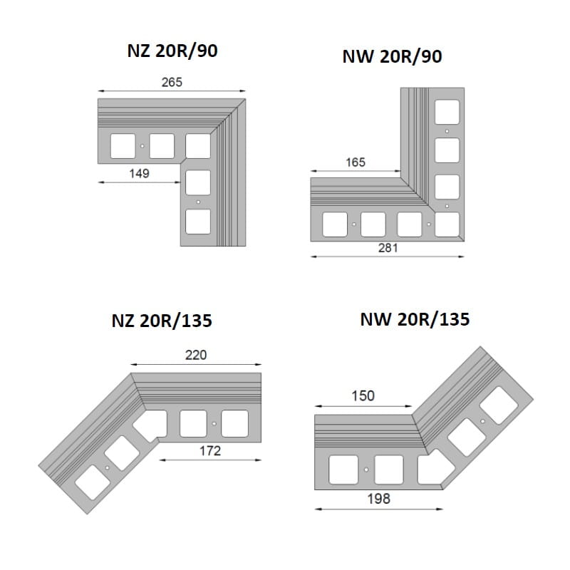 Narożnik do profilu okapowego Renoplast K20R (posadzka z żywicy typu "kamienny dywan")