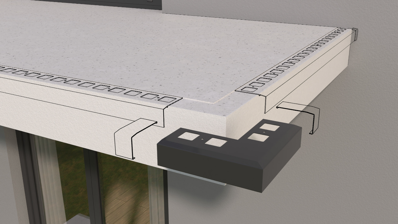 Do każdego narożnika w zestawie dodawane są dwa kołki montażowe.