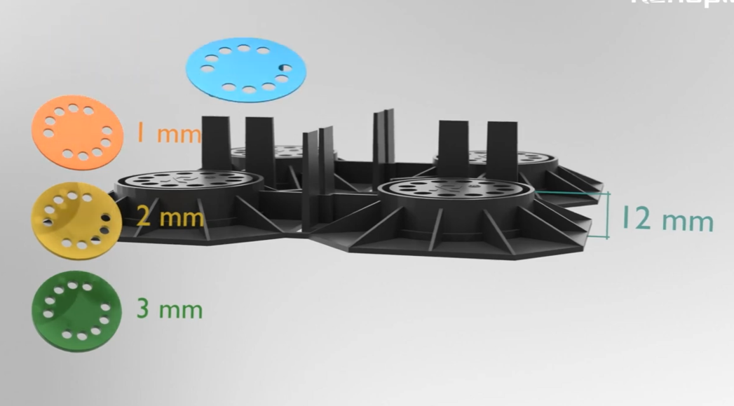 Krążek poziomujący o grubości 0,5 mm stosowany przy podkładkach tarasowych SMART oraz wspornikach Renopad PRO.