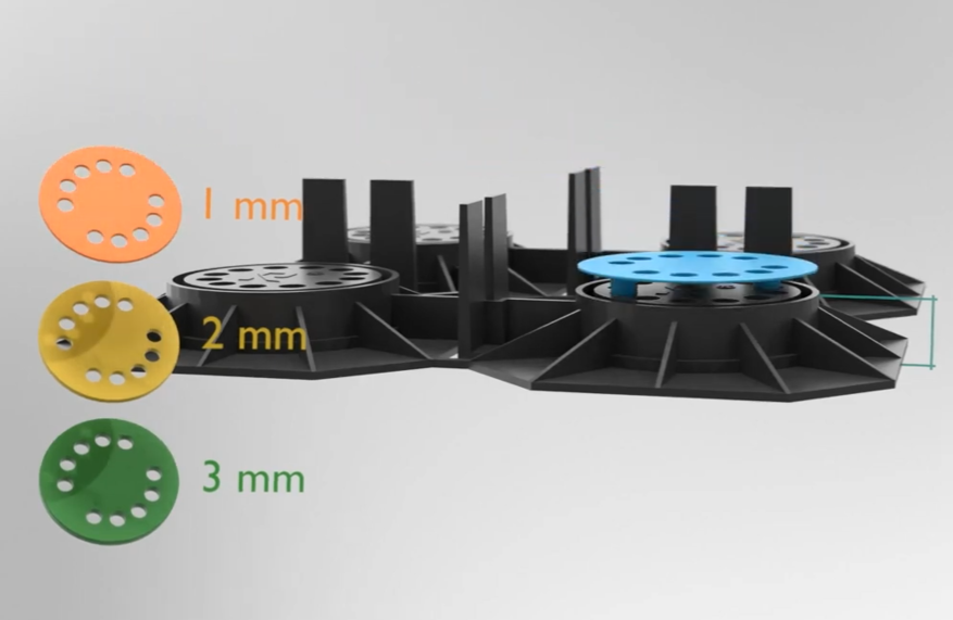 Krążek poziomujący o grubości 3 mm stosowany przy podkładkach tarasowych SMART oraz wspornikach Renopad PRO.