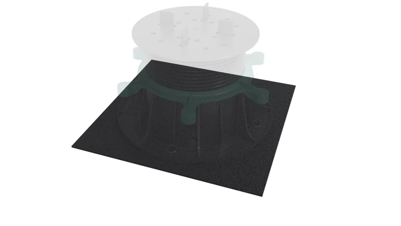 Podkładka wygłuszająca, którą stosujemy pod wspornik (podkładkę) RENOPAD PRO. Układamy je w celu wygłuszenia dźwięków, które mogą powstać podczas użytkowania z posadzki wykonanej w systemie wentylowanym.