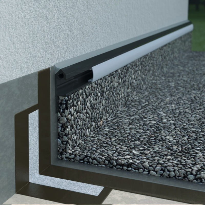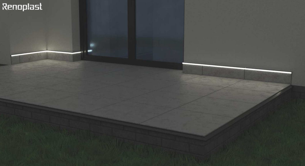 Profil cokołowy C LED Renoplast przeznaczony jest do posadzki tradycyjnej klejonej oraz żywicznej typu "kamienny dywan".
