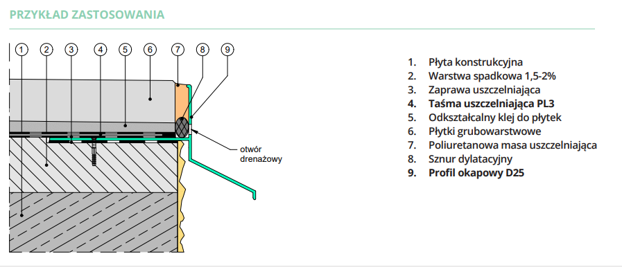 ZASTOSOWANIE: Posadzki z płytek na zaprawie klejowej oraz podesty tarasowe układane bezpośrednio na hydroizolacji (np. membrana EPDM)