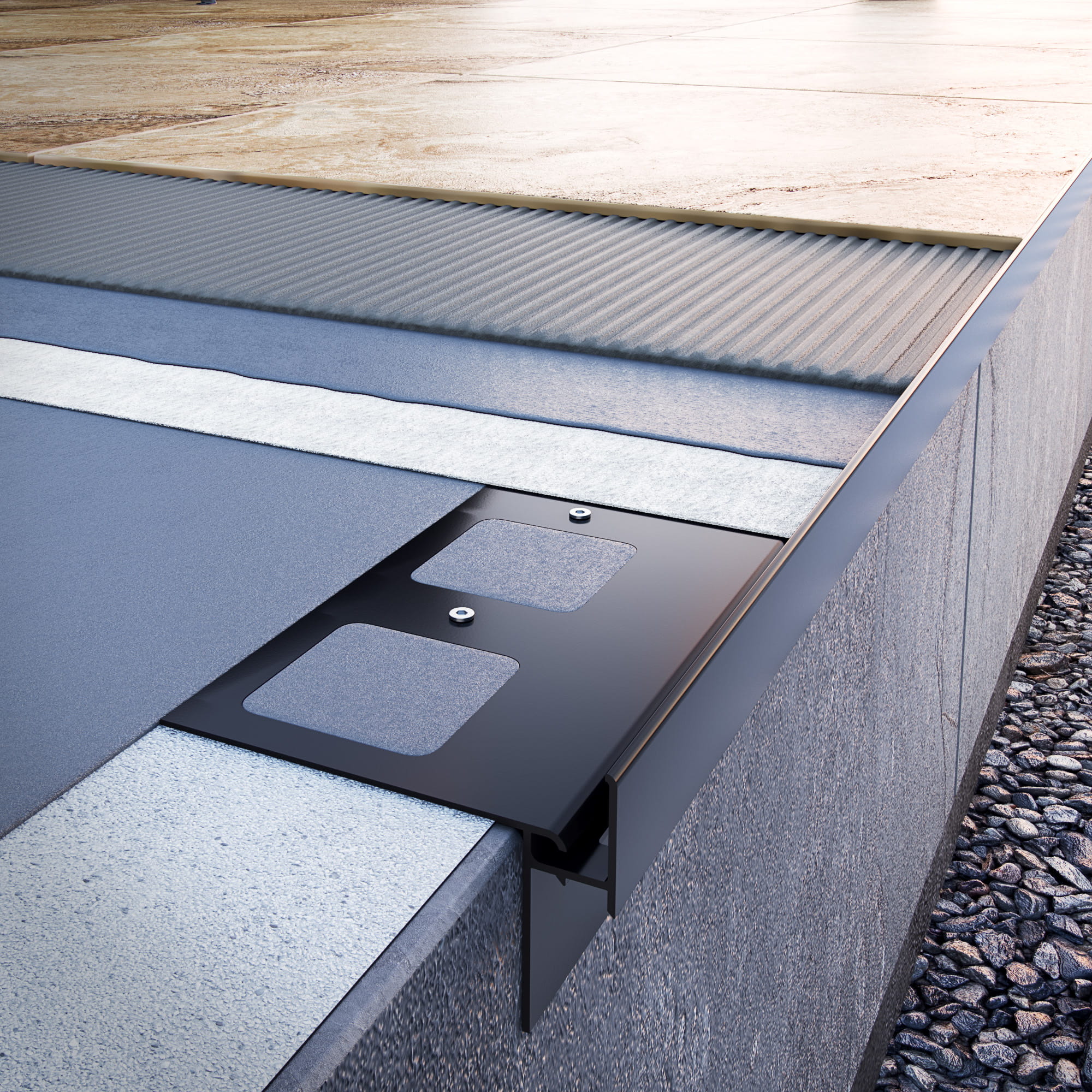 Profile okapowe Renoplast K35 to systemy do wykończenia krawędzi balkonów i tarasów z posadzkami z płytek ceramicznych układanych na zaprawie klejowej (klasycznej).
