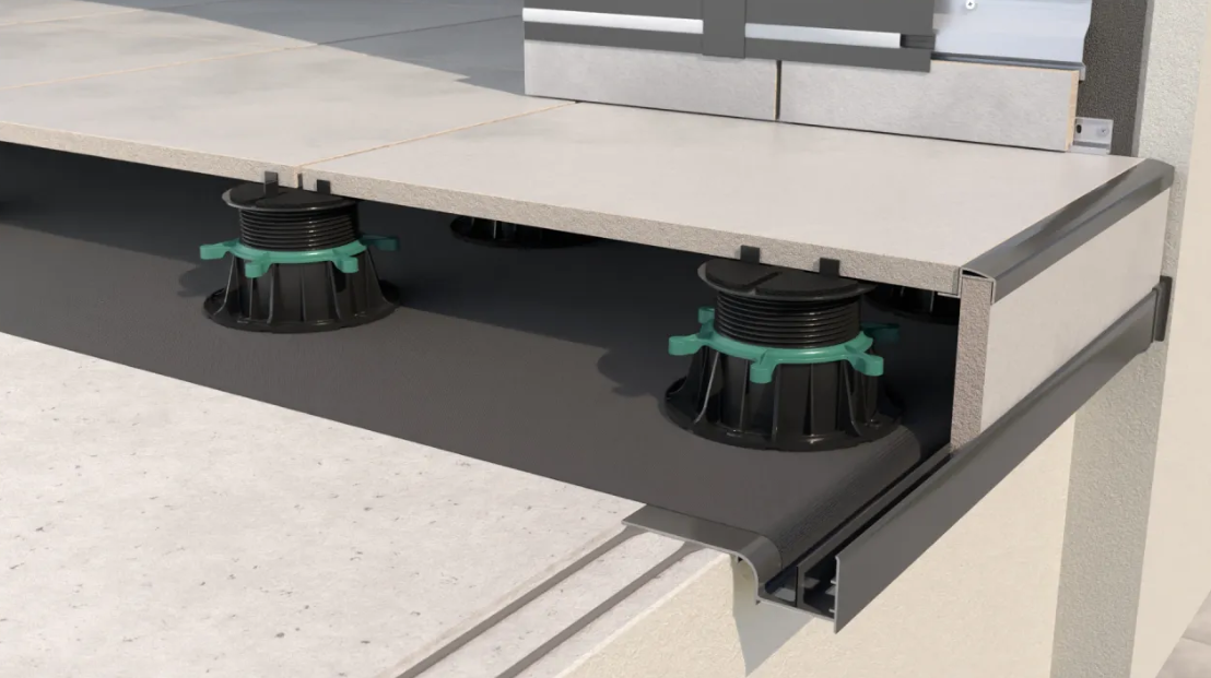 Budowa profili w profesjonalny sposób umożliwia nam odprowadzenie wody z powierzchni balkonu oraz tarasu, a ich innowacyjna budowa daje nam możliwość estetycznej zabudowy czoła balkonu płytami o grubości 20 mm.