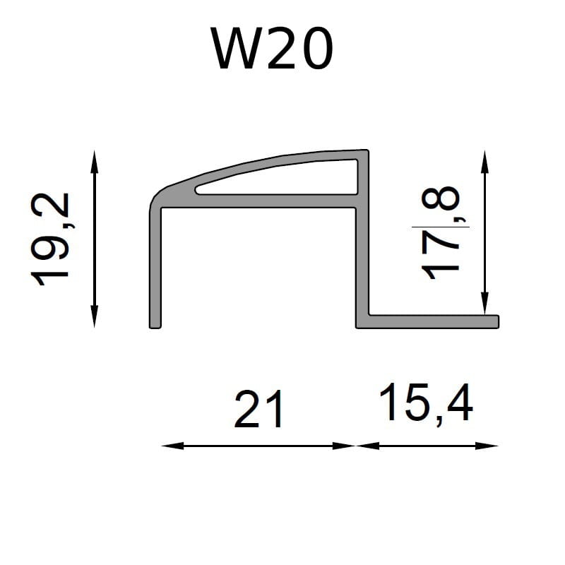 Profil zamykający do profili W20R Renoplast używamy przy styku płytki tarasowej (posadzki) z płytką pionową (czołową) w profilu okapowym W20R. m W20.